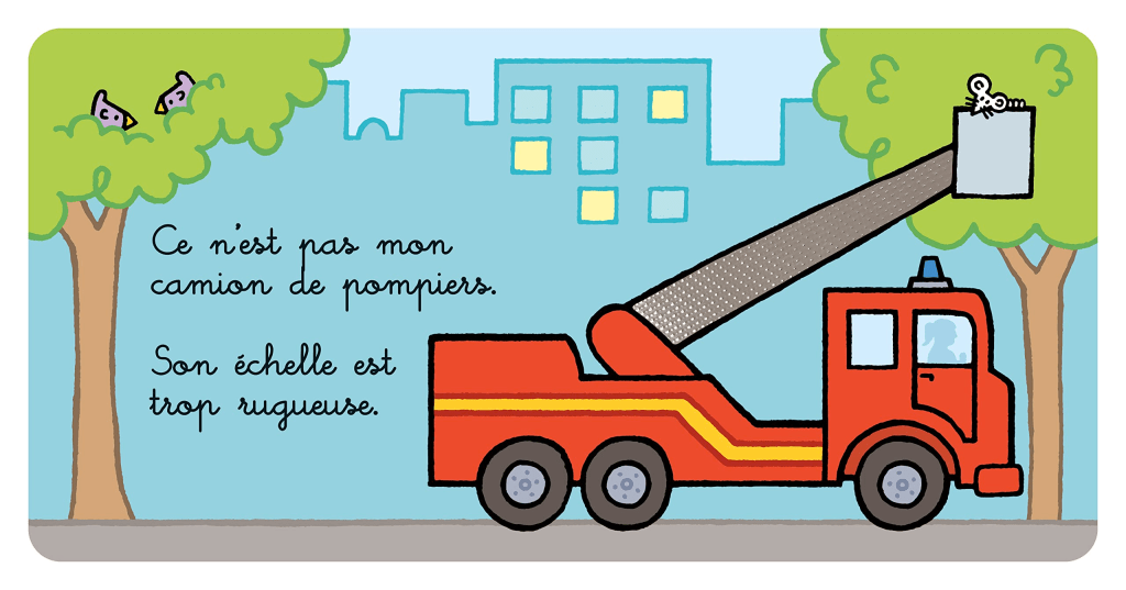 Critique : La collection des Tout-doux des Éditions Usborne s’enrichit d’un nouveau tome, avec pour thème : les pompiers .C’est une collection où chaque livre est différent mais identique car le personnage n’est jamais le même mais le livre fonctionne sur un principe de ronde. Il permet ainsi à l’enfant de découvrir les différentes parties qui composent le corps soit d’un animal où d’un véhicule ici les pompiers . Au travers des pages,il va faire travailler plusieurs de ses sens: l’ouïe, la mémoire, le toucher, la vue, il enrichit son vocabulaire en découvrant les différents éléments du véhicule et en racontant une histoire autour de ces découvertes. Sur chaque double page, le texte est construit sur la même base: Ce n’est pas mon camion de pompier ! Cette rengaine permet ainsi au tout-petit de retrouver l’esprit de la comptine, et de pouvoir anticiper ce que l’adulte va lire. De plus, chaque partie nommer est recouverte d’un matériau qui permet d’aiguiser le toucher. Un livre court mais efficace, qui intéressera les petits. Et avec une conception cartonnée, il résiste à d’éventuels chocs ! Sans oublier le petit format qui permet de l’emmener avec soi