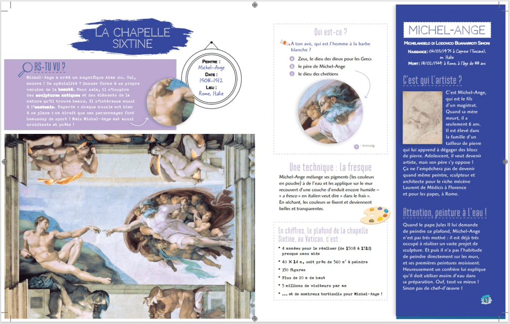 Chronique : Dans ce livre des œuvres phares de la peinture avec la biographie du peintre, des encarts, une reproduction des l’œuvres , une analyse plus détaillée des œuvres.
