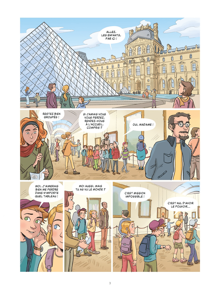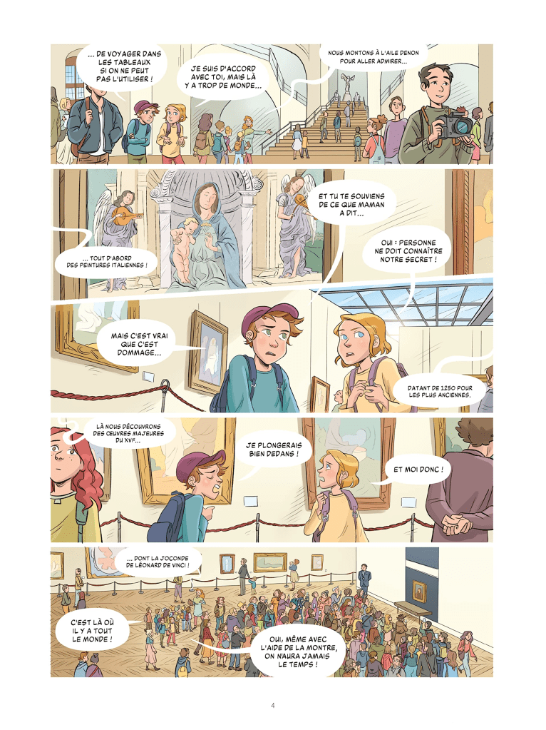 Lucas et Jade ont hérité du pouvoir de leur mère : traverser les tableaux pour atterrir dans l’atelier de l’artiste. Quel pouvoir extraordinaire ! Encore faut-il pouvoir s’en servir. Et la tentation est immense surtout lorsqu’ils sont en visite scolaire au musée du Louvre !
