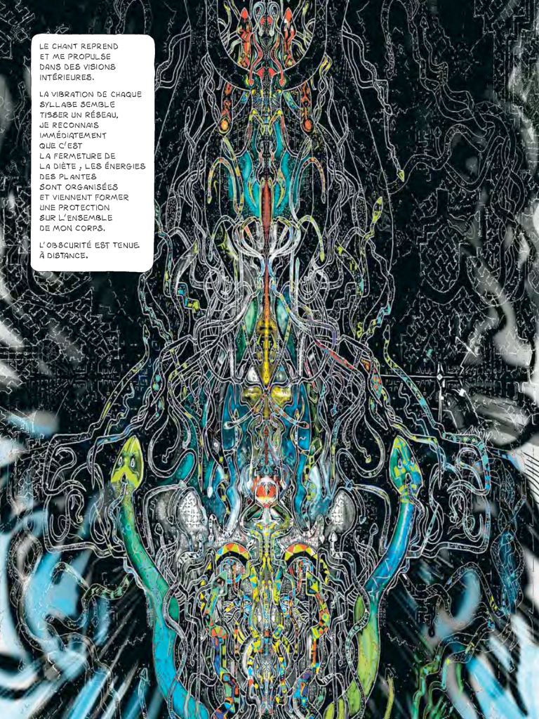 « Doctor Ayahuasca » est avant tout une exploration profonde de la spiritualité, de la conscience et de la quête de sens. Les illustrations foisonnantes de détails, associées au récit intime de Kounen, créent une atmosphère envoûtante qui plonge le lecteur dans une réalité alternative. C’est un voyage qui transcende les limites de la réalité, nous emportant dans les profondeurs inexplorées de l’âme humaine.
